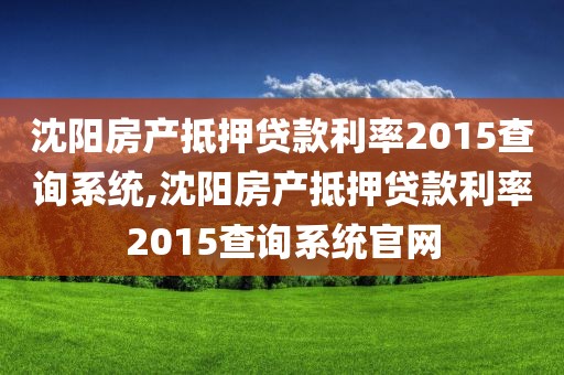【沈阳房产抵押贷款利率2015查询系统】全面解析