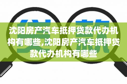 沈阳房产汽车抵押贷款代办机构全攻略