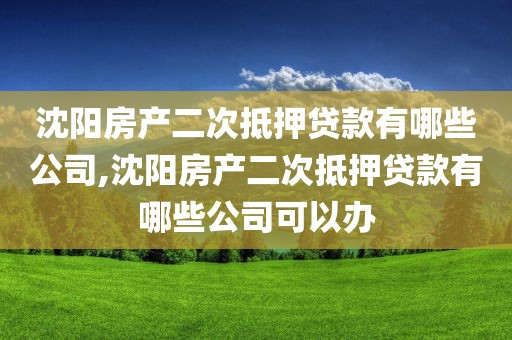 沈阳,作为辽宁省的省会,是一个经济、文化、教育和科技中心,吸引了大量的人才和投资者,在沈阳,房产市场一直是一个热门话题,尤其是房产抵押贷款,二次抵押贷款是指在房产已经抵押过一次的基础上,再次进行抵押以获取贷款,这篇文章将详细介绍沈阳房产二次抵押贷款的相关公司以及流程。