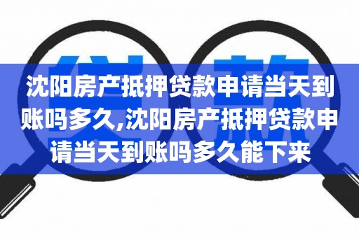 在沈阳,房产抵押贷款是一种常见的融资方式,对于急需资金的借款人来说,申请当天到账是一个重要因素,房产抵押贷款的审批和放款时间受到多种因素的影响,包括银行或金融机构的审批流程、借款人的信用状况、房产评估等,本文将详细介绍沈阳房产抵押贷款的申请流程、所需时间以及一些注意事项。