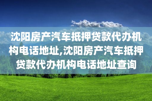 沈阳房产汽车抵押贷款代办机构电话地址及操作指南