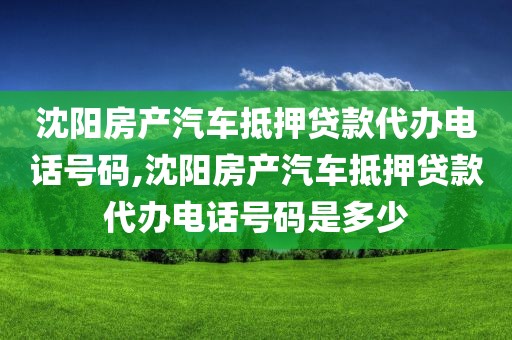 随着经济的不断发展和个人消费需求的增加,越来越多的人选择通过抵押贷款的方式解决资金问题,在沈阳,房产和汽车抵押贷款已成为一种常见的融资手段,本文将为您详细介绍沈阳房产汽车抵押贷款代办服务的相关信息,以及如何获取相关电话号码,以便您能够更加便捷地办理相关业务。