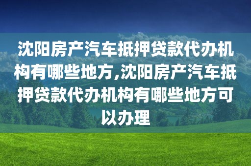 沈阳作为中国东北地区的重要城市,近年来房产和汽车市场发展迅速,吸引了众多投资者和消费者,在这种背景下,房产汽车抵押贷款代办机构应运而生,为有贷款需求的人士提供了便捷的服务,本文将详细介绍沈阳房产汽车抵押贷款代办机构的相关信息,帮助您更好地了解这一市场。